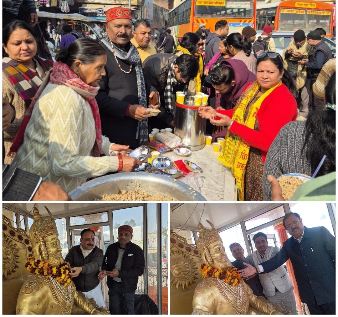 सहारनपुर(मनीष अग्रवाल)। अन्तर्राष्ट्रीय वैश्य महासम्मेलन सहारनपुर द्वारा मंगलवार 14 जनवरी को महाराजा अग्रसेन चौक , रेलवे स्टेशन पर *” मकर संक्रान्ति “* पर्व पर *खिचडी़ वितरण का कार्यक्रम* आयोजित किया गया । प्रोग्राम में सर्वप्रथम महाराजा अग्रसेन जी की प्रतिमा पर नगर विधायक राजीव गुम्बर, पूर्व मंत्री संजय गर्ग राष्ट्रीय उपाध्यक्ष एवं जिला अध्यक्ष सुनील गुप्ता , वाई के गुप्ता, राम राजीव सिंगल.र्डी के बंसल,सोम गोयल ,अश्विनी गुप्ता ,आर्किटेक्ट नरेश गुप्ता ,डॉ. एस के अग्रवाल, डॉ. पी.डी. गर्ग, वरिष्ठ महामंत्री निलेश गुप्ता पंकज गुप्ता, बृजेश अग्रवाल हितेश गर्ग समन्वय समिति के अध्यक्ष पवन गोयल व महामंत्री रवि गुप्ता श्रीमती एवं विपिन गुप्ता एडवोकेट एम के गुप्ता C A कर्मेंद्र गुप्ता, सुनील गुप्ता ,प्रधान महिला प्रदेश मंत्री श्रीमती कुसुम अग्रवाल जिला अध्यक्ष संगीता गोयल श्रीमती मधु अग्रवाल आयुषी अग्रवाल, रमाँ गुप्ता ,अमिता गुप्ता ,रुक्मणी बंसल, कानन सिंघल युवा अध्यक्ष भानु अग्रवाल, राजकुमार गुप्ता एडवोकेट, विनय गुप्ता,आदि ने माल्यार्पण किया उसके उपरांत सोम गोयल, कृष्ण राजीव सिंगल, आदेश अग्रवाल, दिनेश अग्रवाल, सुशील गर्ग प्रशांत गोयल ने महाराज जी की आरती की फिर शुरुआत की खिचड़ी वितरण से प्रोग्राम में मुख्य रूप से नीरज गुप्ता, पीडी गर्ग सोम गोयल दिनेश गोयल संजय सिंघल आदेश अग्रवाल विनीत मित्तल डॉक्टर एसके अग्रवाल जे के तायल अंकित अग्रवाल अग्रवाल महिला समिति अरविंद गुप्ता श्याम बिहारी मित्तल कन्हैया सिंगल आदि ने भी सहयोग दिया। प्रोग्राम में मुख्य रूप से संजय गर्ग पार्षद , दीपक गोयल सेक्टर अध्यक्ष विवेक गोयल सी ए, अरविंद गुप्ता, राधा कृष्ण बंसल पवन गुप्ता,मनोज अग्रवाल, मुकुल, मित्तल,संजय गुप्ता, राघव गुप्ता, नवीन गुप्ता,राजीव अग्रवाल कल्पना अग्रवाल स्वीटी गुप्ता वीणा मित्तल, अंशु गुप्ता,मोनिका अग्रवाल, विभा गुप्ता, निगम बंसल, संगीता गोयल कमलेश अग्रवाल, अनिल अग्रवाल राकेश बंसल, आदि ने खिचड़ी वितरण के प्रोग्राम में अपने परिवार के साथ भागीदारी निभाई।