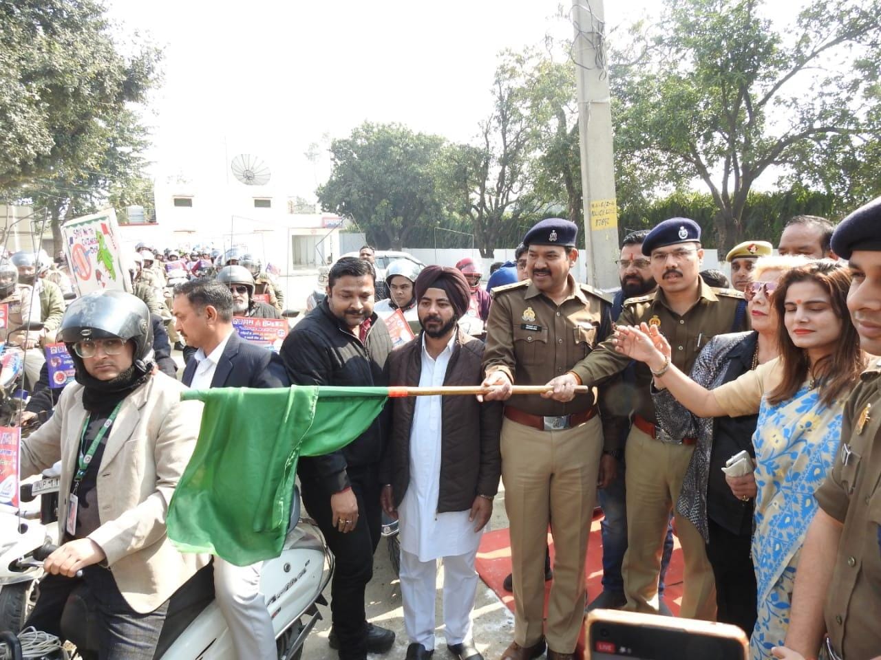 सहारनपुर (मनीष अग्रवाल)। वरिष्ठ पुलिस अधीक्षक, सहारनपुर डॉ विपिन ताडा द्वारा जनपद वासियों से प्रतिबन्धित चाइनीज मांझे का प्रयोग न करने की अपील की गयी। आगामी बसंत पंचमी पर होने वाली पतंग बाजी को लेकर पुलिस अलर्ट हो गई है। पुलिस टीमो द्वारा चाइनीज मांझा बेचने वाले दुकानदारों के खिलाफ बडा अभियान चलाया जा रहा है। एसएसपी ने कहा पुलिस द्वारा प्रतिबन्धित चाइनीज मांझे का प्रयोग करने वालो के विरूद्ध FIR दर्ज कर कठोर कार्यवाही की जायेगी।प्रतिबन्धित चाइनीज मांझा बेचने वाले दुकानदारों को पुलिस द्वारा चिन्हित किया जा रहा है। वही आज वीरवार को सहारनपुर पुलिस ने परख “NGO” व व्यापार वर्ग के सहयोग से प्रतिबन्धित चाइनीज मांझे के प्रति मोटरसाइकिल जागरूकता रैली का रिजर्व पुलिस लाइन्स, सहारनपुर से किया गया शुभारम्भ।