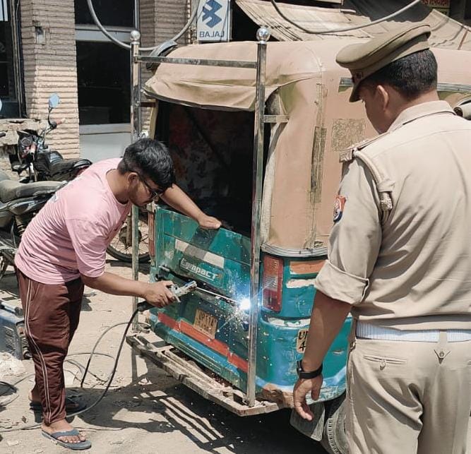 सहारनपुर (मनीष अग्रवाल)। सोमवार को पुलिस उपमहानिरीक्षक, डॉ. अजय साहनी सहारनपुर परिक्षेत्र, सहारनपुर एवं वरिष्ठ पुलिस अधीक्षक,डॉ. विपिन ताडा सहारनपुर के आदेशानुसार पुलिस अधीक्षक यातायात, सहारनपुर के पर्यवेक्षण में दुर्घटनाओं/यातायात उल्लंघनो में कमी ले जाने हेतु यातायात प्रभारी अमित तोमर द्वारा दिनांक 25/05/24 से एक सप्ताह का विशेष अभियान चलाते हुए अभियान के तीसरे दिन आज दिनांक 27/05/24 तक को जनपद में संचालित 70 ऑटो रिक्शा (कुल-185 ऑटो रिक्शा) के पिछले डालें एवं दाहिनी खिड़की को स्थाई रूप से बंद कराया गया तथा ऑटो रिक्शा चालकों को यातायात संबंधी नियमों के पालन करने हेतु जागरूक किया गया तथा ऑटो चालकों को निर्देशित किया गया कि वह सभी स्वयं ही अपने ऑटो रिक्शा की दाहिनी खिड़की एवं पिछले डाले को स्थाई रूप से बंद रखें जिससे होने वाली किसी भी दुर्घटना की संभावना से बचा जा सके, अपने वाहनों की दोनों नंबर प्लेट प्रदर्शित रखते हुए ही वाहन का संचालन करें ।