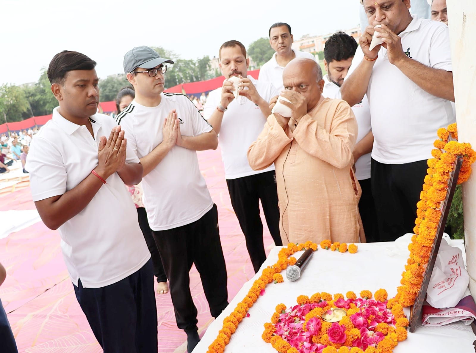 सहारनपुर(मनीष अग्रवाल)। पुलिस लाईन मे शनिवार को “ग्यारहवें अंतरराष्ट्रीय योग दिवस” के अवसर पर लाईन की फील्ड में सामूहिक योगाभ्यास कार्यक्रम का आयोजन किया गया। कार्यक्रम का शुभारम्भ डीआईजी रेंज अभिषेक सिंह व एसएसपी रोहित सिंह सजवाण सहारनपुर द्वारा भगवान जी के सम्मुख दीप प्रज्ज्वलित कर व शंख उचारण के साथ किया गया। अन्तर्राष्ट्रीय योग दिवस के अवसर पर डीआईजी व एसएसपी द्वारा पुलिस लाईन सहारनपुर में सभी अधिकारियों/कर्मचारियों के साथ योगाभ्यास कर स्वस्थ रहने का संदेश दिया गया।