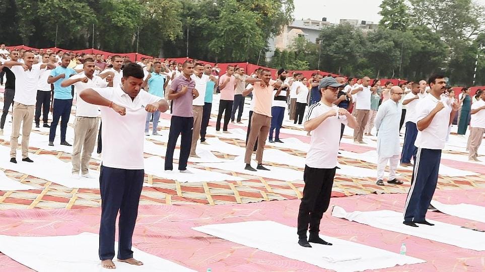 योग दिवस पर जिले के उच्च अधिकारियों द्वारा आवाहन किया कि योग को अपने जीवन का हिस्सा बनाएं। योग सिर्फ शारीरिक रूप से ही नहीं बल्कि बौधिक और आध्यात्मिक रूप से भी स्वस्थ्य रखता है। पूरे विश्व भर में 177 से भी ज्यादा देशों ने योग को स्वीकार किया है। मानव जीवन में बढते अवसाद, तनाव एवं बीमारियों से निजात पाना है तो योग को अपनी दिनचर्या में शामिल करें। योग करने वालो मे एसपी देहात सागर जैन, एसपी ट्रैफिक सिदार्थ,व पुलिस कर्मी ,व्यापारी नेता एव गणमान्य लोग मौजूद रहे। वही पूरे भारत वर्ष के हर मौहल्ला, ग्राम, गली एवं वार्ड में उत्सव के साथ योग दिवस मनाया गया।