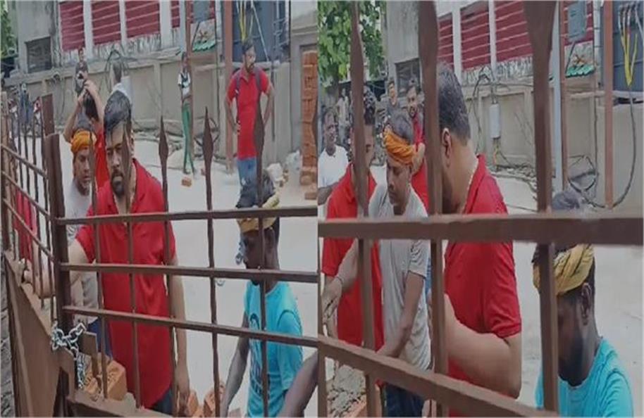 उत्तर प्रदेश के वाराणसी से एक शर्मनाक वीडियो सामने आया है। जिसमें गाजीपुर के जमानिया विधानसभा की पूर्व भाजपा विधायिका सुनीता सिंह का बेटा खुलेआम दबंगई दिखा रहा है। उसने एक व्यक्ति के घर के गेट पर ताला लगा दिया। फिर गेट के सामने बाउंड्री बनवाकर उन्हें कैद कर रaहा है। यह सिर्फ दबंगई नहीं, मानवता को शर्मसार करने वाला मामला है। भाजपा नेताओं की गुंडई से जनता परेशान है।
