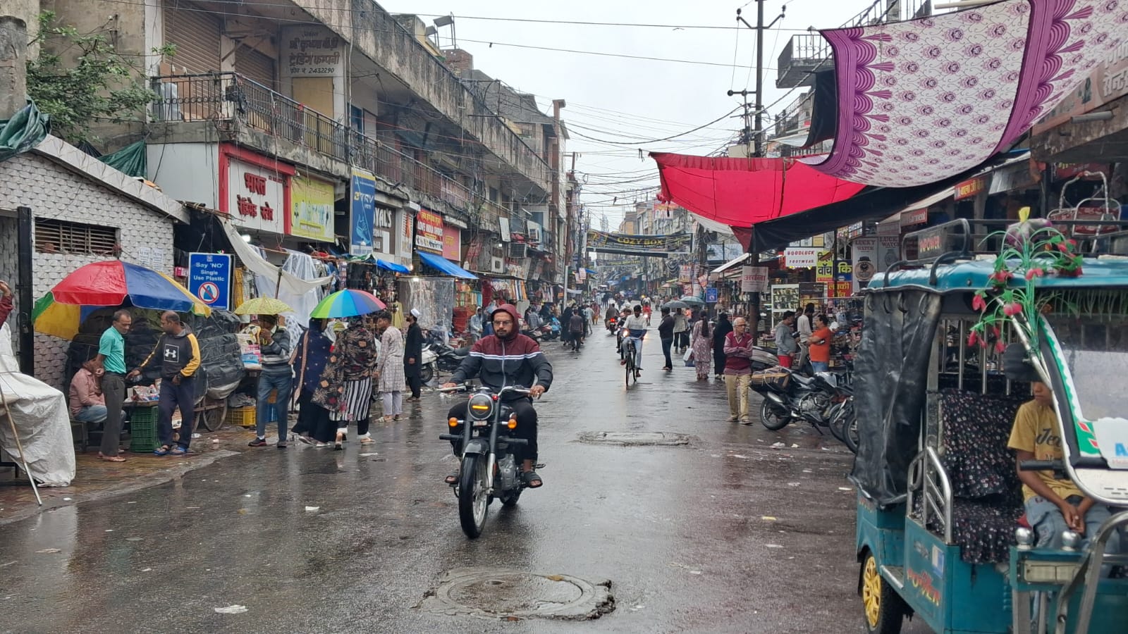 मुजफ्फरनगर। गुरुवार से शुरू हुई बारिश ने पूरे दिल्ली-एनसीआर समेत पश्चिमी उत्तर प्रदेश के मौसम का मिजाज अचानक बदल दिया है। जहां कुछ दिन पहले तक गर्मी दस्तक देने लगी थी, वहीं अब एक बार फिर ठंडी हवाओं और बूंदाबांदी ने सर्दी का अहसास करा दिया है। हालात ऐसे हो गए कि लोगों को फिर से अपने गर्म कपड़े निकालने पर मजबूर होना पड़ा। बारिश के चलते सबसे ज्यादा असर त्योहारों की रौनक पर पड़ा है। खासतौर पर ईद जैसे बड़े पर्व पर, जब बाजारों में आमतौर पर भारी भीड़ और खरीदारी का उत्साह देखने को मिलता है, इस बार मुजफ्फरनगर के बाजारों में सन्नाटा पसरा नजर आया। लगातार हो रही बारिश और ठंडी हवाओं के कारण लोग घरों से बाहर निकलने से बचते दिखे। शहर के प्रमुख बाजार शिव चौक, भगत सिंह रोड, मीनाक्षी चौक और नई मंडी क्षेत्र जहां आमतौर पर ईद से पहले रौनक चरम पर होती है, वहां इस बार दुकानदार ग्राहकों का इंतजार करते नजर आए। कपड़ों, जूतों और सेवइयों की दुकानों पर अपेक्षाकृत कम भीड़ देखने को मिली, जिससे व्यापारियों के चेहरे पर मायूसी साफ झलकती रही। लोगों का कहना है कि मौसम की इस अचानक करवट ने त्योहार की खुशियों पर पानी फेर दिया है। परिवार के साथ बाजार जाकर खरीदारी करने की परंपरा इस बार मौसम की मार के आगे फीकी पड़ गई। बच्चे और महिलाएं, जो ईद की खरीदारी को लेकर सबसे ज्यादा उत्साहित रहते हैं, वे भी घरों में ही सिमटे रहे। मौसम विशेषज्ञों के अनुसार, पश्चिमी विक्षोभ के सक्रिय होने के चलते यह बदलाव आया है, जिसके कारण अगले कुछ दिनों तक हल्की बारिश और ठंडी हवाएं चलने की संभावना बनी हुई है। इससे तापमान में गिरावट दर्ज की गई है और सुबह-शाम ठंड का एहसास फिर बढ़ गया है।