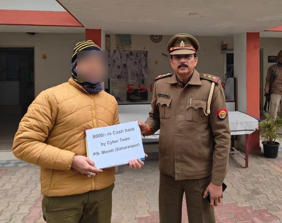 सहारनपुर (मनीष अग्रवाल)। थाना कोतवाली मण्डी सहारनपुर की पहल से साइबर हैल्प डेस्क पुलिस टीम द्वारा साइबर ठगी के शिकार हुए व्यक्ति के रुपये कराये गये वापस ।वरिष्ठ पुलिस अधीक्षक, सहारनपुर द्वारा जनपद में साइबर ठगी की घटनाओं की रोकथाम हेतु लगातार अभियान चलाया जा रहा है। इसी क्रम में, पुलिस अधीक्षक नगर व क्षेत्राधिकारी नगर प्रथम के निकट पर्यवेक्षण में तथा प्रभारी निरीक्षक पीयूष दीक्षित थाना कोतवाली मंडी के कुशल नेतृत्व में थाना कोतवाली मण्डी पर गठित साइबर हैल्प डेस्क टीम द्वारा उक्त प्रकरण में तत्काल कार्यवाही करते हुए शिकायतकर्ता श्रीकान्त वर्मा