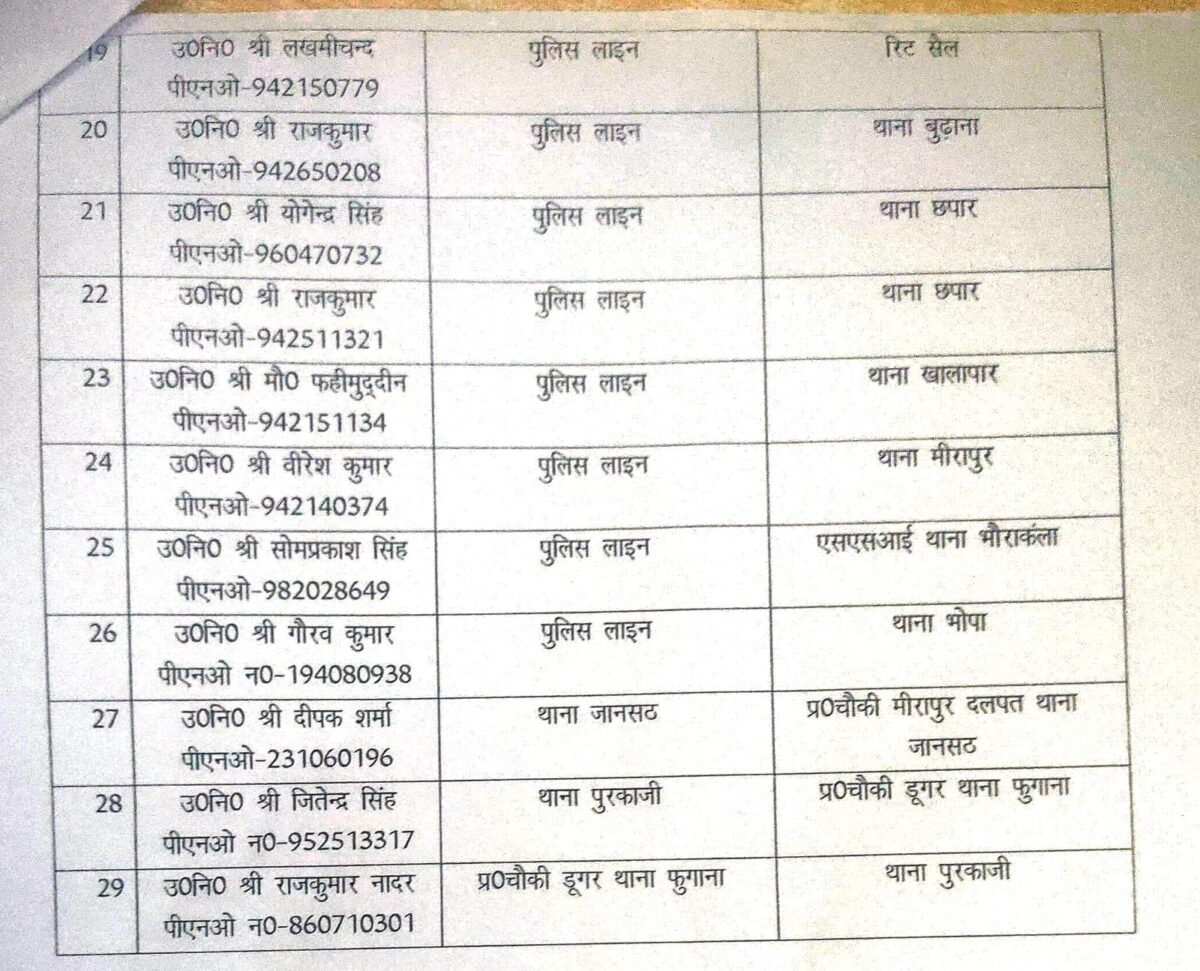 मुज़फ्फरनगर। जिले में कानून-व्यवस्था को और सुदृढ़ बनाने के उद्देश्य से वरिष्ठ पुलिस अधीक्षक संजय कुमार वर्मा ने 29 उपनिरीक्षकों के तबादले कर दिए हैं। प्रशासनिक आवश्यकताओं को ध्यान में रखते हुए यह फेरबदल किया गया है।
