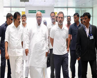 गांधी और खरगे हवाई अड्डे से सात किलोमीटर की यात्रा करके बारामुंडा मैदान स्थित सभा स्थल पहुंचे।