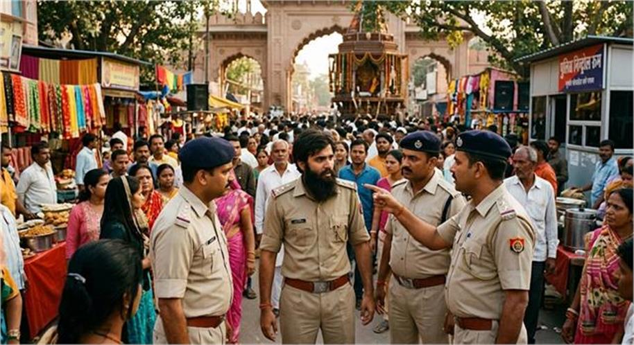 वृंदावन के प्रसिद्ध रंगजी मंदिर में चल रहे ब्रह्मोत्सव रथ मेले में उस वक्त हड़कंप मच गया, जब पुलिस ने एक फर्जी दरोगा को रंगे हाथों दबोच लिया। हाथरस का रहने वाला एक युवक अपने सब-इंस्पेक्टर पिता की वर्दी चोरी छिपे पहनकर मेले में लोगों पर धौंस जमा रहा था। लेकिन उसकी एक छोटी सी गलती (बढ़ी हुई दाढ़ी) ने असली पुलिसकर्मियों को शक में डाल दिया और उसका सारा खेल बिगड़ गया।
