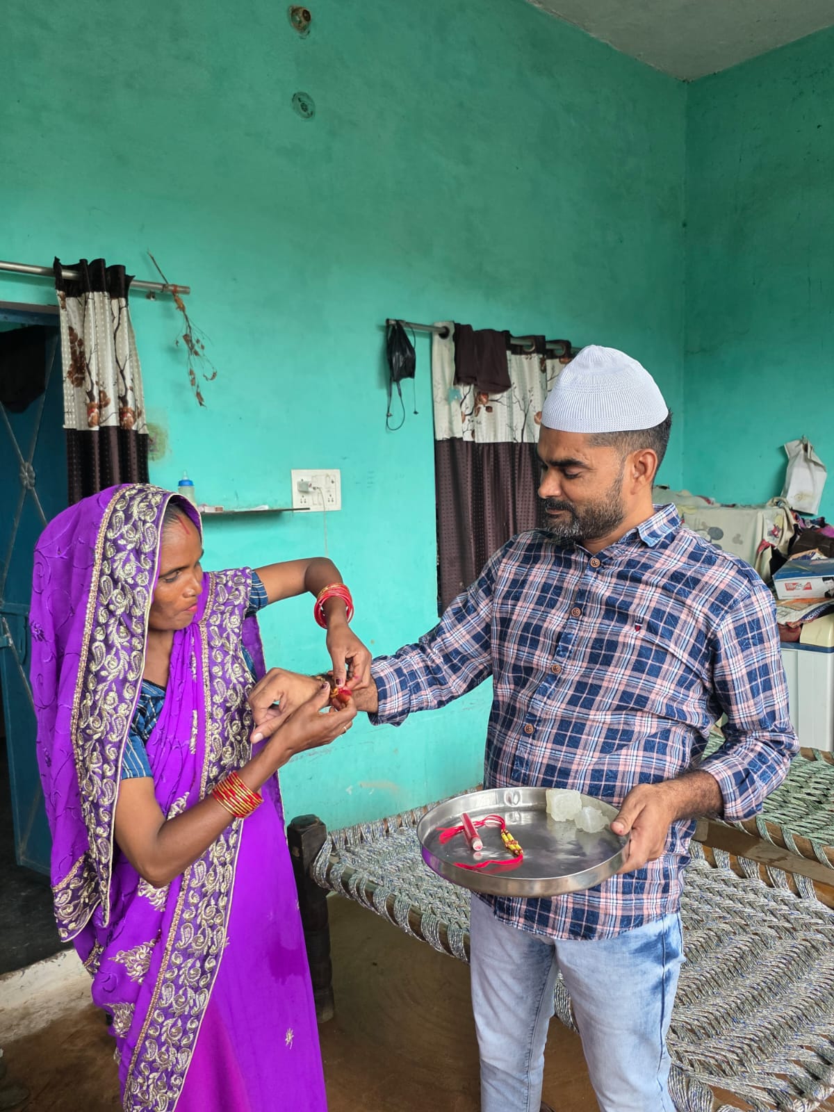 रक्षाबंधन के मौके पर जब अधिकांश लोग अपने-अपने घरों में पर्व मना रहे थे, तभी साहूद हसन ने गांव की गलियों से गुजरते हुए कई बहनों के घर पहुंचकर उनकी कलाई पर राखी बंधवाई। राखी बांधते समय बहनों की आंखों में खुशी और गर्व की चमक साफ झलक रही थी। उन्होंने कहा कि यह पर्व न सिर्फ भाई-बहन के रिश्ते को मजबूत करता है, बल्कि समाज में प्रेम और विश्वास की डोर को भी मजबूती देता है। साहूद हसन ने बताया कि उनके लिए यह पर्व धर्म या जाति का नहीं, बल्कि रिश्तों और भावनाओं का है। इस दौरान उनके साथ इरशाद अली और खब्बाब सलमानी ने भी बहनों से राखी बंधवाकर नई मिसाल पेश की और भाईचारे के संदेश को और मजबूती दी।