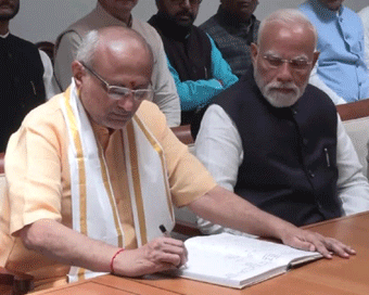 निर्वाचन अधिकारी ने नामांकन पत्रों की जांच की जिसके बाद राधाकृष्णन ने एक रजिस्टर पर हस्ताक्षर किए। इसके बाद निर्वाचन अधिकारी ने प्रधानमंत्री को नामांकन पत्रों की पावती पर्ची सौंपी।