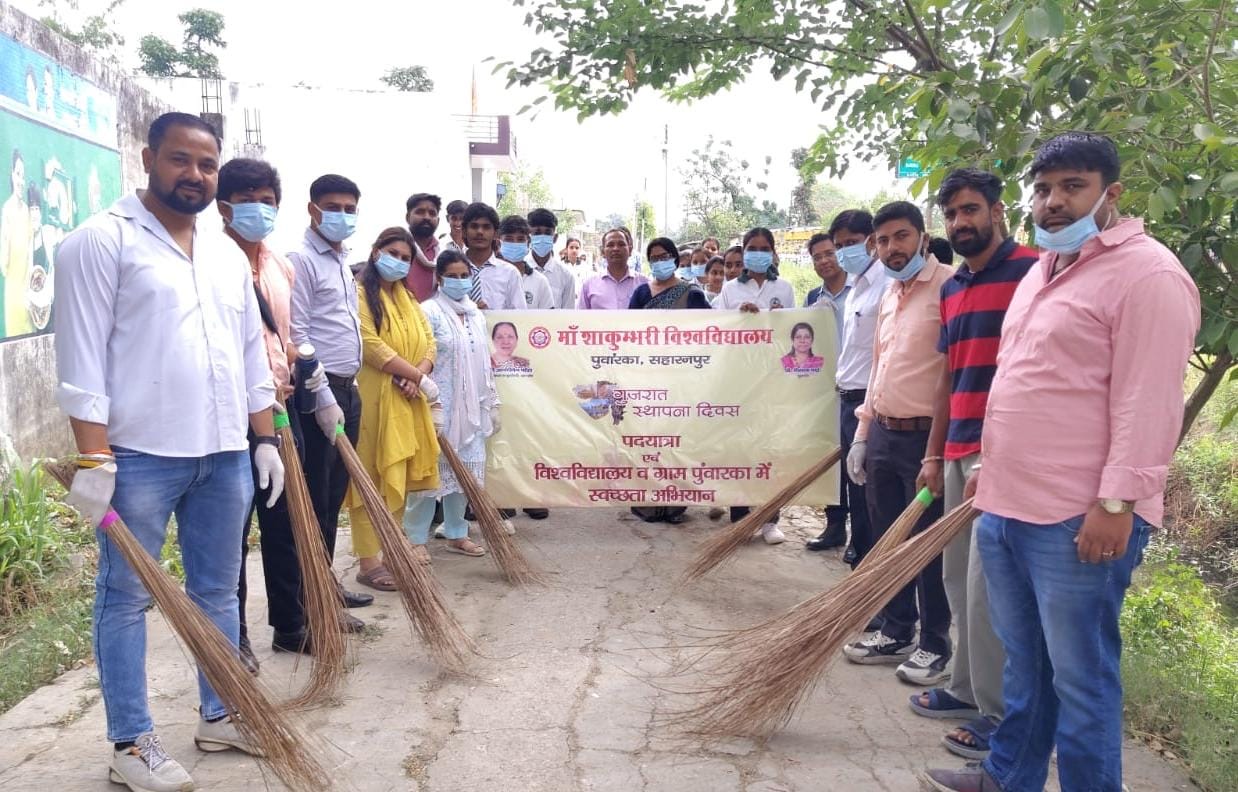 *माँ शाकुंभरी विश्वविद्यालय में गुजरात स्थापना दिवस के उपलक्ष्य में चलाया स्वच्छता अभियान*