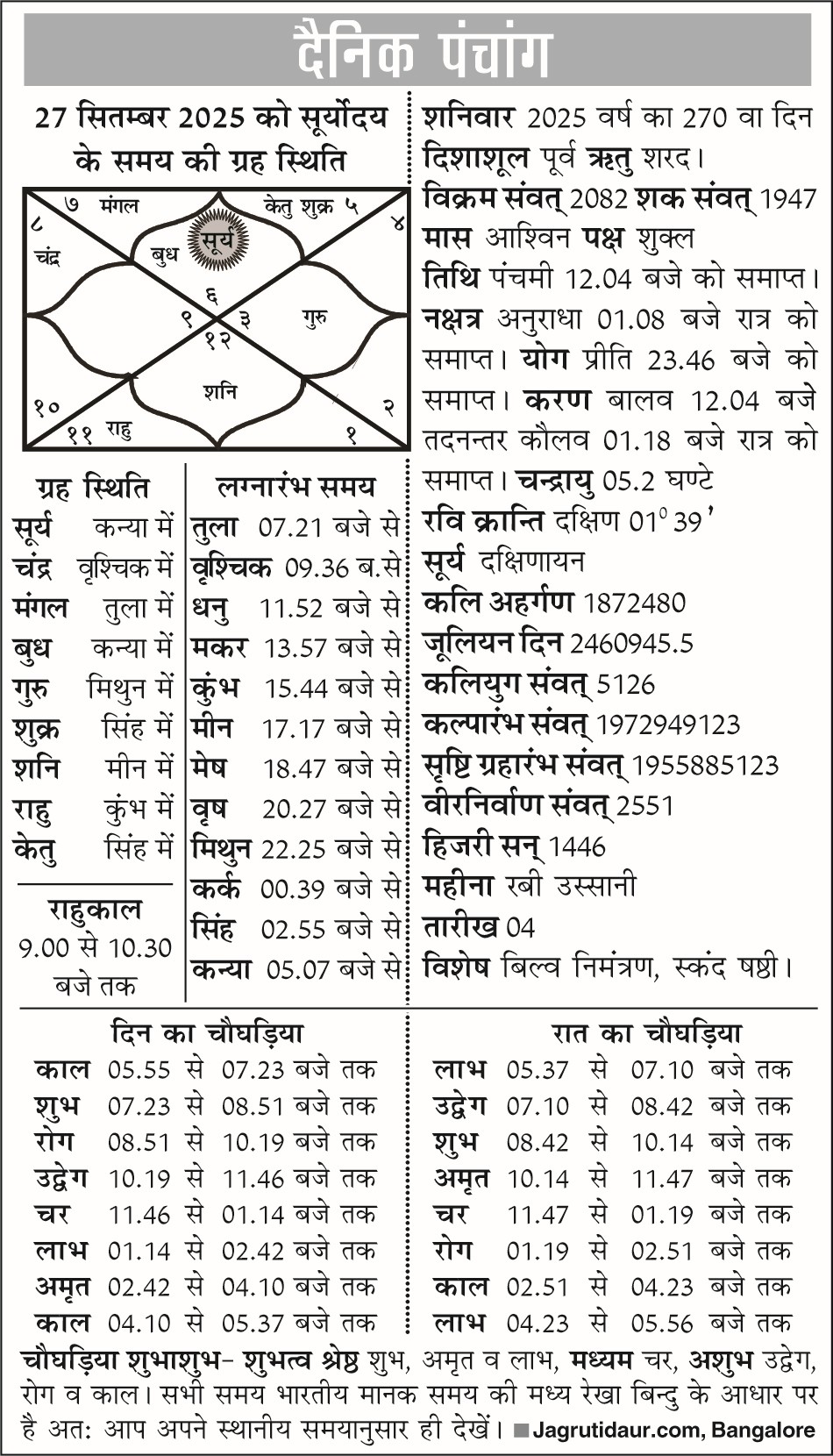 पंचांग : 27 सितंबर, 2025