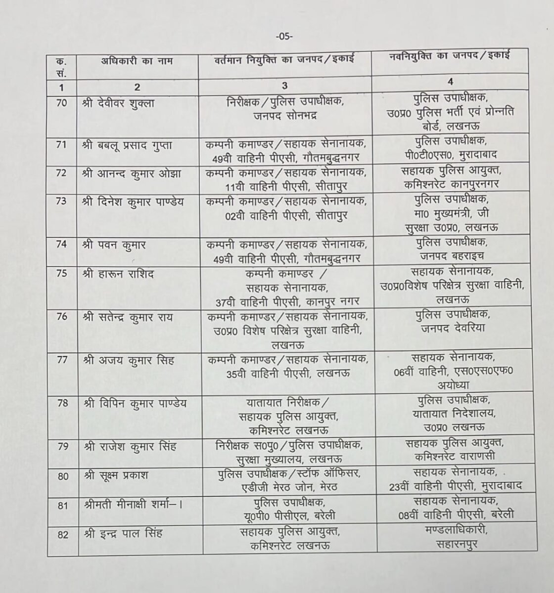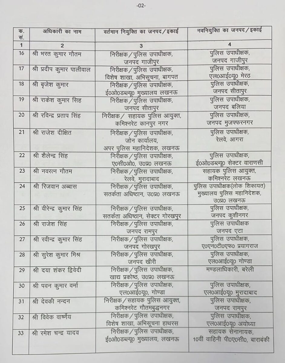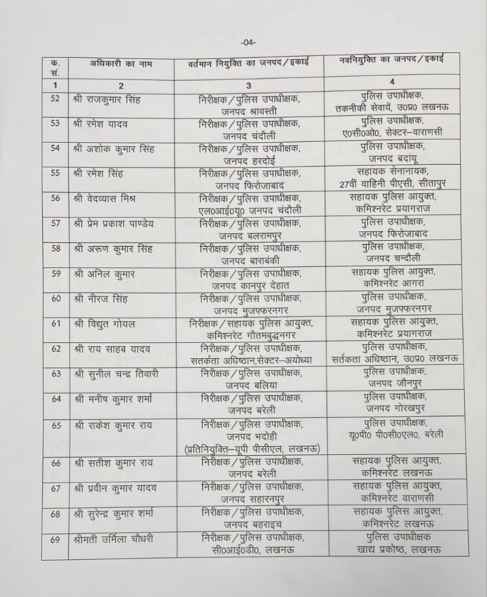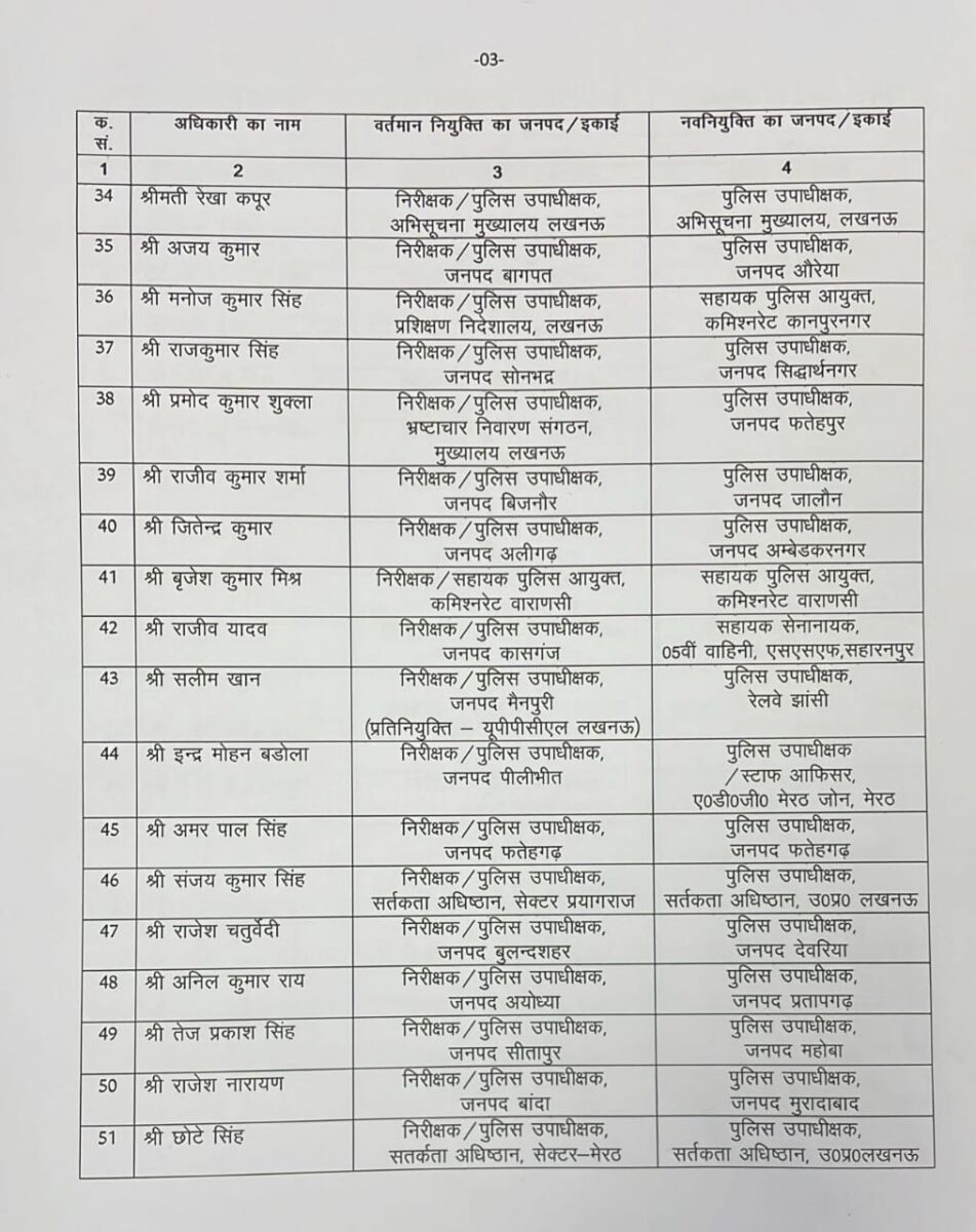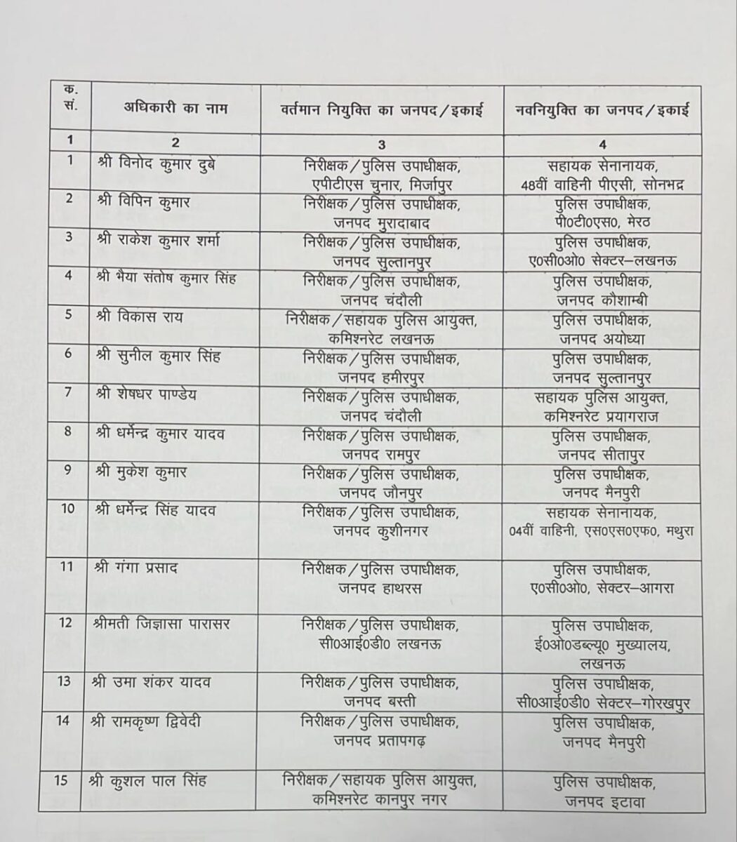 उत्तर प्रदेश पुलिस मुख्यालय (DGP HQ) से जारी आदेश के अनुसार, प्रदेश में पुलिस विभाग में बड़ा प्रशासनिक फेरबदल किया गया है। कुल 82 डिप्टी एसपी (Deputy SP) के तबादले और नई तैनातियां की गई हैं।