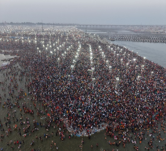 प्रयागराज महाकुम्भ में उमड़ पड़ा आस्था का जन सैलाब, पुलिस मुस्तैद