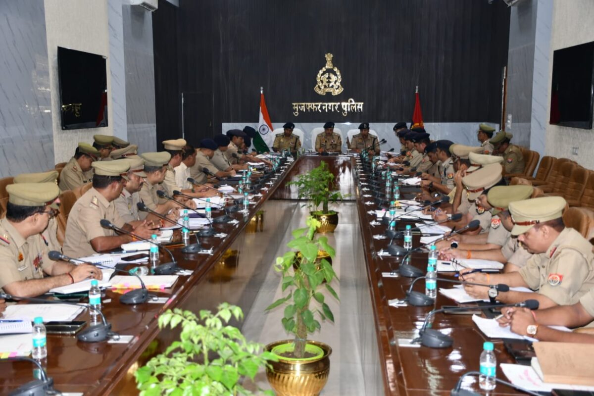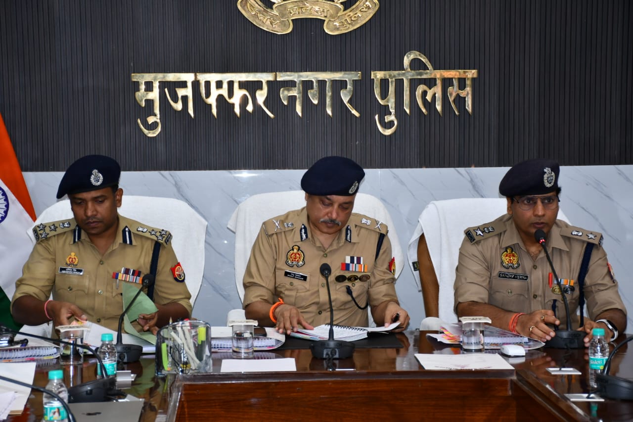 मुजफ्फरनगर | आगामी त्योहारों को शांतिपूर्ण, सौहार्दपूर्ण एवं सुरक्षित वातावरण में संपन्न कराने के उद्देश्य से अपर पुलिस महानिदेशक मेरठ जोन, मेरठ भानू भास्कर ने शनिवार को रिजर्व पुलिस लाइन, मुजफ्फरनगर स्थित यातायात सभागार में जनपद के पुलिस अधिकारियों के साथ गोष्ठी कर कानून-व्यवस्था की समीक्षा की और आवश्यक दिशा-निर्देश दिए। बैठक की शुरुआत गार्द की सलामी से हुई, जिसके बाद वरिष्ठ पुलिस अधीक्षक मुजफ्फरनगर संजय कुमार वर्मा ने एडीजी का स्वागत पुष्पगुच्छ भेंट कर किया।