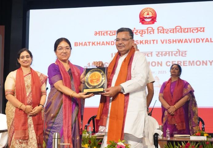 लखनऊ,10 सितम्बर । उत्तर प्रदेश के पर्यटन एवं संस्कृति मंत्री जयवीर सिंह ने बुधवार को भातखण्डे संस्कृति विश्वविद्यालय, लखनऊ के कलामण्डपम् प्रेक्षागृह में आयोजित 15 वें दीक्षान्त समारोह में मेधावियों को 40 पदक प्रदान कर छात्र-छात्राओं को बधाई दी और उनके उज्जवल भविष्य की कामना की। इसके अलावा 09 शोधार्थियों को वर्ष 2025 के लिए पीएचडी की उपाधि प्रादान की गयी।