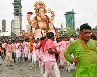 मुंबई में शनिवार को 10 दिवसीय गणपति उत्सव के अंतिम दिन अनंत चतुर्दशी पर बारिश के बावजूद लोग भगवान गणेश की मूर्तियों के विसर्जन के लिए ढोल-ताशे बजाते और गुलाल…