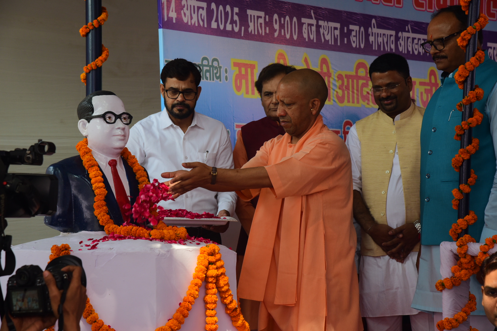 बाबा भीमराव अंबेडकर जयंती के अवसर पर अंबेडकर महासभा में पुष्पांजलि अर्पित करते मुख्यमंत्री योगी आदित्यनाथ