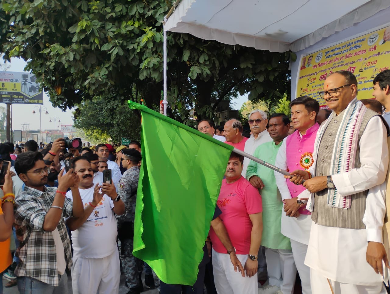 रात्रि विश्राम के बाद उपमुख्यमंत्री ब्रजेश पाठक रविवार की सुबह भाजपा युवा मोर्चा की ओर से नमो युवा रन के कार्यक्रम में शामिल हुए। उन्हाेंने नमो युवा रन काे हरी झंडी दिखाकर पांच किलोमीटर की इस दौड़ की शुरुआत की। करीब 10 हजार बच्चों ने इसमें हिस्सा लिया। विजेताओं को 5100, 3100 और 2100 रुपये नकद पुरस्कार दिया गया, जबकि तीन प्रतिभागियों को 1000 रुपये का प्रोत्साहन पुरस्कार प्रदान की गई। वहीं सभी को टी-शर्ट और प्रमाणपत्र भी बांटे गए।