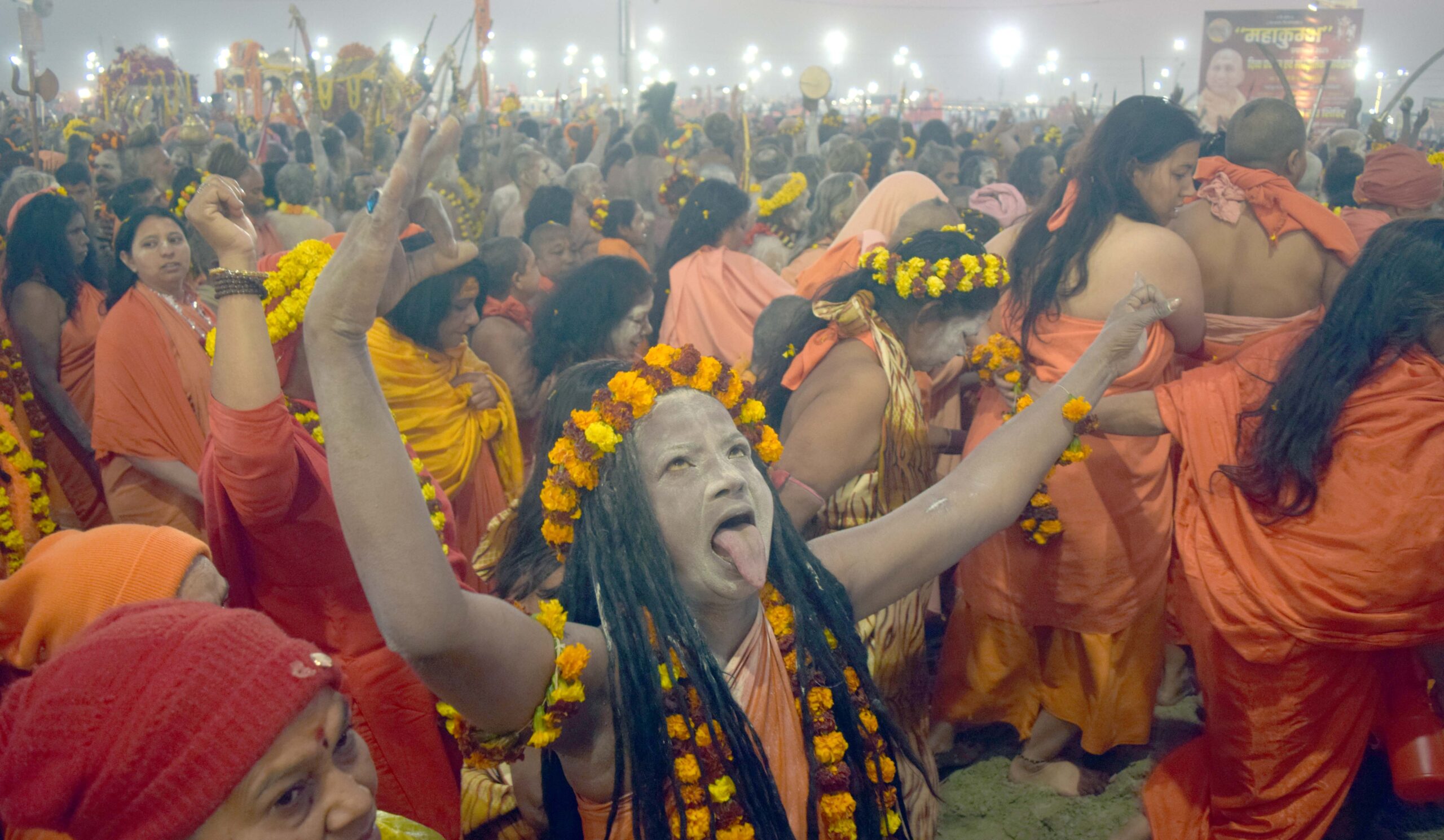 प्रयागराज, 3 फ़रवरी (हि.स.)। बंसत पंचमी पर्व पर शाही स्नान में कला का प्रदर्शन करते महिला सान्यासी।