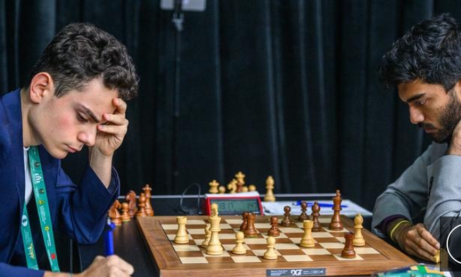 सात खिलाड़ी — जिनमें विदित गुजराती, अलीरेजा फिरोज़ा (ईरान-फ्रांस), उज़्बेकिस्तान के नादिरबेक अब्दुस्सत्तोरोव और अमेरिका के हांस नीमन व अभिमन्यु मिश्रा शामिल हैं — पांच अंकों के साथ संयुक्त दूसरे स्थान पर हैं।