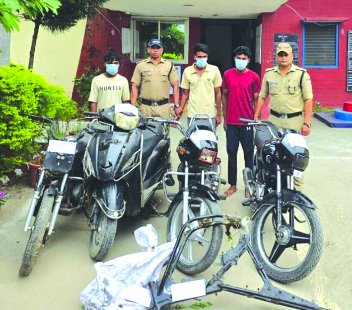 वाहन चोर की तलाशी में पुलिस ने घटनास्थल के आसपास के सीसीटीवी खंगाले। पुलिस ने मुखबिरों को सक्रिय करने के साथ चैकिंग अभियान चलाया। 4.2 माईल स्टोन पर पुलिस टीम ने चैकिंग के दौरान एक बाइक पर सवार तीन व्यक्तियों रोककर चैक किया तो उनके पास से थाने में बाइक चोरी से संबंधित चोरी की बाईक बरामद हुई। सख्ती से पूछताछ करने पर आरोपितों ने विभिन्न स्थानों से चोरी किये तीन अन्या दुपहिया वाहनों को नीलधारा के पास झाडियों में से बरामद कराया।