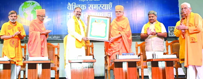 संगोष्ठी के अध्यक्ष देसंविवि के प्रतिकुलपति डॉ चिन्मय पण्ड्या ने कहा कि भारत वह भूमि है, जहां वसुधैव कुटुम्बकम् का भाव उत्पन्न हुआ और जिसने अध्यात्म को जन्म दिया। यह वही देश है जहां से सर्वे भवन्तु सुखिन: जैसे सार्वभौमिक कल्याण के विचार विकसित हुए। उन्होंने कहा कि आज जिस प्रकार विश्व अनेक जटिल समस्याओं से जूझ रहा है, उनके समाधान भारत की सनातन परंपरा में निहित है। यह परंपरा धार्मिक जीवनशैली है और एक समग्र जीवनदर्शन भी है, जो व्यक्ति को आत्मकल्याण से लोकमंगल की ओर ले जाती है। डॉ. पण्ड्या ने विभिन्न उद्धरणों के माध्यम से स्पष्ट किया कि सनातन भारतीय दृष्टिकोण ही वैश्विक समस्याओं के समाधान में सहायक हो सकता है।