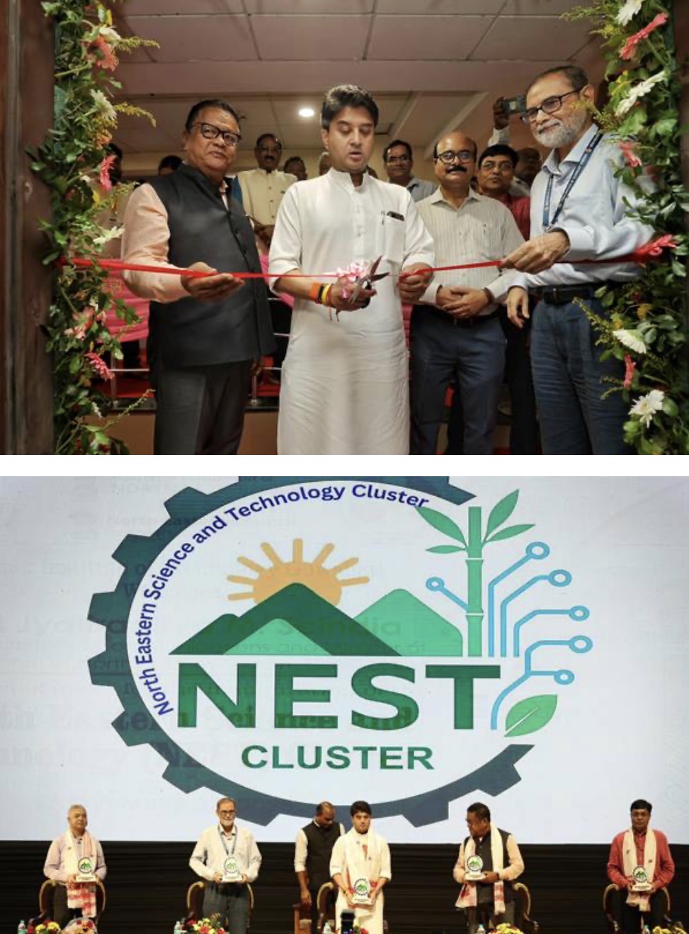 केंद्रीय संचार मंत्रालय के अनुसार सिंधिया ने पैंसठ नए माध्यमिक विद्यालय भवनों का निर्माण, चायगांव–उकिउम सड़क का उन्नयन, सिलोनिजन–धनसिरी पार घाट पर आरसीसी पुल का निर्माण और कोकराझार व बक्सा जिलों में औद्योगिक परिसर का विकास जैसी परियोजनाओं की आधारशिला रखी है। मंत्रालय के अनुसार आईआईटी गुवाहाटी में बाईस दशमलव अट्ठानवे करोड़ रुपये की लागत से स्थापित एनईएसटी क्लस्टर पूर्वोत्तर के नवाचार पारिस्थितिकी तंत्र का केंद्र बनेगा। यह क्लस्टर चार प्रमुख क्षेत्रों स्थानीय नवाचार, सेमीकंडक्टर और कृत्रिम बुद्धिमत्ता, बांस आधारित तकनीकें और जैव प्लास्टिक पर कार्य करेगा।