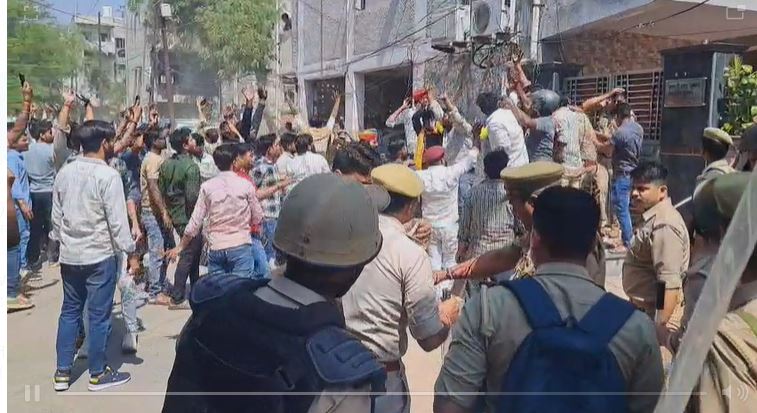 पुलिस ने बल प्रयोग कर उपद्रवियों को हटाया, इंसपेक्टर समेत पुलिसकर्मी हुए घायल