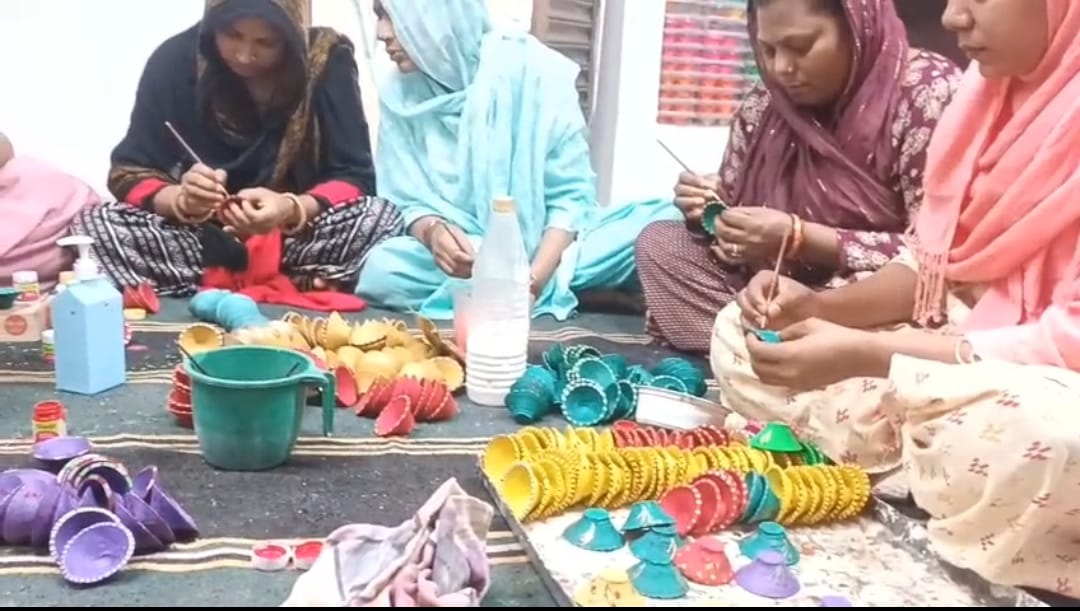 जौनपुर,14 अक्टूबर । उत्तर प्रदेश के जौनपुर में ग्रामीण स्वयं सहायता समूहाें (एसएचजी) की महिलाएं दीपोत्सव पर्व दीपावली में चार चांद लगाने के लिए अपना योगदान देने में जुटी हुईं हैं। यहां जलालपुर के महिमापुर गांव में गंगा जमुनी तहजीब की मिसाल पेश करते हुए मिल्की स्वयं सहायता समूह की अध्यक्ष जफरून एजाज काे मिलाकर 7 मुस्लिम और 5 हिन्दू समेत कुल 12 महिला सदस्यों के साथ मिलकर आकर्षक और लगभग दो घंटे जलने वाला मिट्टी मोम का दीपक बना रही हैं। समूह के तैयार दीपक घर-घर काे दीपावली की राेशनी से गुलजार करने काे तैयार हैं।