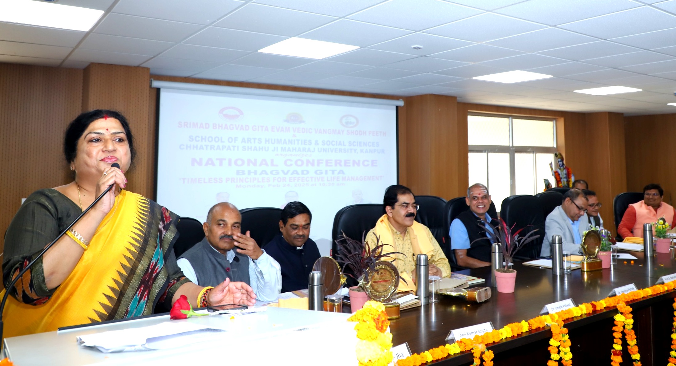 कानपुर, 24 फरवरी (हि.स.)। कानपुर में सोमवार को छत्रपति शाहू जी महाराज विश्वविद्यालय में कुलपति प्रो विनय कुमार पाठक की प्रेरणा और मार्गदर्शन में स्कूल ऑफ आर्ट्स ह्यूमिनिटिज एवं सोशल साइंसेज में एक दिवसीय भगवत गीता पर राष्ट्रीय संगोष्ठी का आयोजन किया गया।