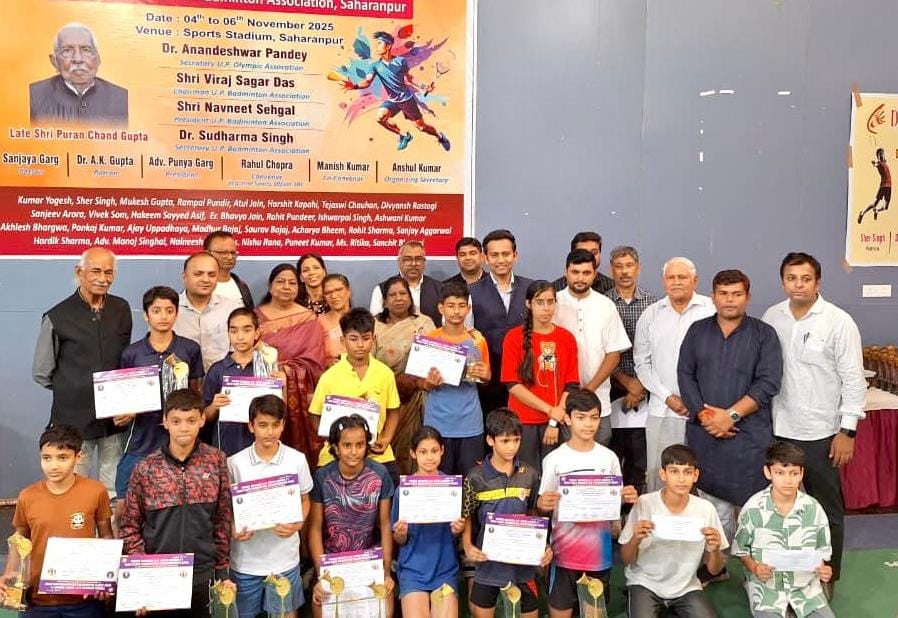 सहारनपुर। डॉ. भीमराव अंबेडकर स्टेडियम में गुरुवार को अंडर-11 वर्ग की बैडमिंटन प्रतियोगिता के फाइनल मुकाबले खेले गए। खिलाड़ियों ने शानदार प्रदर्शन करते हुए दर्शकों का दिल जीत लिया। प्रतियोगिता के समापन पर वरिष्ठ पुलिस अधीक्षक आशीष तिवारी ने विजेता और उपविजेता खिलाड़ियों को ट्रॉफी, प्रमाणपत्र और ₹1,00,000 की इनामी राशि प्रदान की।गर्ल्स सिंगल्स (U-11) वर्ग के फाइनल में लखनऊ की सांवि कुमार ने अलीगढ़ की मेघा सिंह को 21-18, 22-24, 21-19 से हराकर खिताब अपने नाम किया। वहीं बॉयज सिंगल्स (U-11) में आगरा के श्रेष्ठ कुमार ने अपने ही शहर के खिलाड़ी ओनिस खंडेलवाल को 18-21, 25-23, 21-9 से मात देकर जीत दर्ज की। गर्ल्स डबल्स में आभ्या दीक्षित (आगरा) और अन्वी प्रधान (मेरठ) की जोड़ी ने लखनऊ की किमाया सिंह और सांवि कुमार को सीधे सेटों में 21-13, 21-6 से पराजित किया।