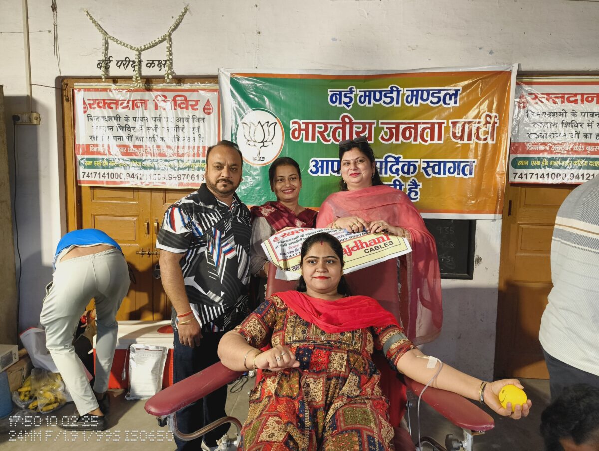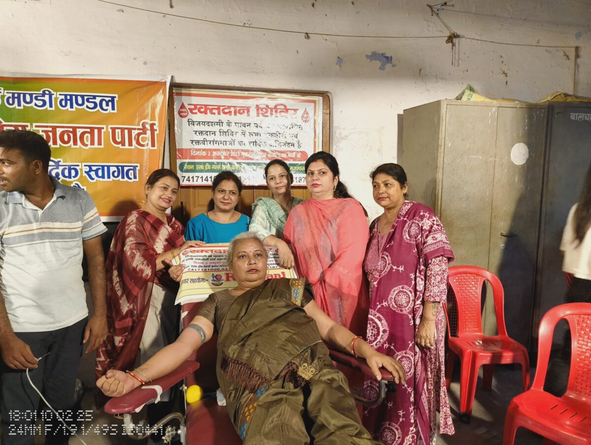 मुज़फ्फरनगर। विजयदशमी के पावन और ऐतिहासिक पर्व पर समर्पित युवा शक्ति एवं समर्पित महिला शक्ति के तत्वावधान में एस. डी. गर्ल्स इंटर कॉलेज, गाँधी कॉलोनी के मैदान में एक विशाल रक्तदान शिविर का आयोजन किया गया। इस कार्यक्रम का उद्देश्य न केवल मानवता की सेवा करना था, बल्कि विजयदशमी के दिन समाज में दूसरों की मदद और रक्तदान के महत्व को भी उजागर करना था।इस अवसर पर भाजपा नई मंडी मंडल के पदाधिकारी और कार्यकर्ता भी बढ़-चढ़कर शामिल हुए और स्वयं रक्तदान कर कार्यक्रम को सफल बनाने में महत्वपूर्ण भूमिका निभाई।