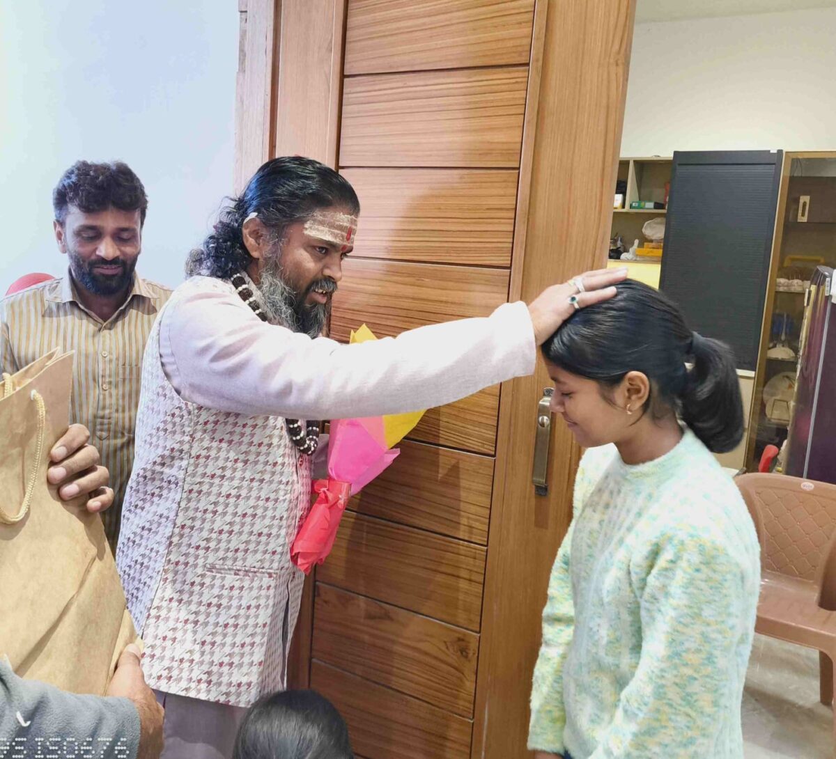 प्रधान पुजारी श्री वाघेश लिंग द्वारिका सिटी स्थित अंशुमन अग्रवाल के आवास पर पहुंचे। वे उत्तराखंड से दिल्ली एक विवाह समारोह में शामिल होने जा रहे थे। उन्होंने बताया कि अंशुमन अग्रवाल के नए घर के गृह प्रवेश कार्यक्रम में शामिल होना भी उनका पूर्व निर्धारित कार्यक्रम था, लेकिन श्री केदारनाथ धाम में धार्मिक सेवाओं की अत्यधिक व्यस्तता के कारण वे समय पर नहीं पहुंच सके। दिल्ली जाते समय उन्होंने विशेष रूप से मुजफ्फरनगर रुककर अग्रवाल परिवार से भेंट की और गृह प्रवेश की शुभकामनाएं दीं। द्वारिका सिटी पहुंचने पर अंशुमन अग्रवाल के परिवार, परिचितों और शहर के गणमान्य व्यक्तियों ने प्रधान पुजारी श्री वाघेश लिंग का माला पहनाकर और पुष्पगुच्छ भेंट कर स्वागत किया। भक्तों ने भी उनसे आशीर्वाद लिया और श्री केदारनाथ धाम से जुड़े आध्यात्मिक अनुभवों पर चर्चा की।