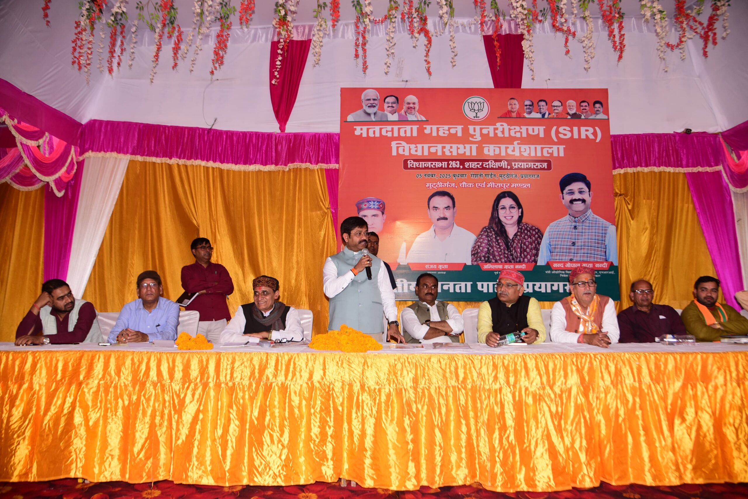 प्रयागराज,05 नवंबर । एसआईआर प्रक्रिया का उद्देश्य फर्जी और डुप्लीकेट वोटरों को हटाना है। एसआईआर लोकतंत्र की असली ढाल है जिसके माध्यम से घुसपैठिए और नकली मतदाताओं को बाहर किया जा सके और सच्चे नागरिकों के अधिकार मजबूत हो सके। यह बात बुधवार को प्रयागराज के शहर दक्षिणी विधानसभा क्षेत्र के मतदाता गहन पुनरीक्षण (एसआईआर) कार्यशाला को संबोधित करते हुए बतौर मुख्य अतिथि उप्र के औद्योगिक विकास मंत्री नन्द गोपाल गुप्ता नन्दी ने कही।