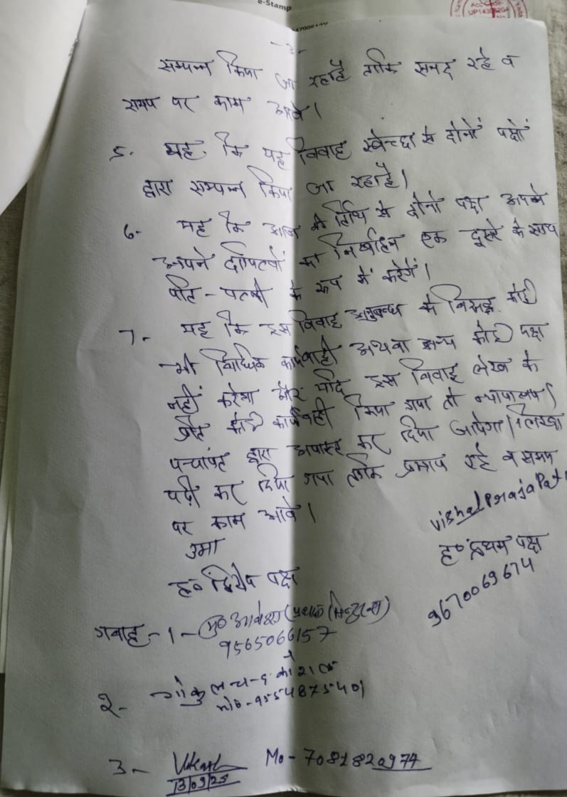 उमा का कहना है कि उसकी शादी पुलिस दबाव में कराई गई। उसने अपने पति शिव शंकर पर किसी दूसरी महिला से अवैध सम्बंध होने का आरोप लगाया। इसी को लेकर दोनों में अक्सर झगड़े होते थे। उमा ने बताया कि जब उसका रिश्तेदार भाई उसे छुड़ाने आया तो पुलिस ने उसे भी फंसा दिया और जबरन मंदिर में विवाह करा दिया। उसने कहा कि जिस व्यक्ति से उसकी शादी कराई गई है, वह वास्तव में उसका रिश्तेदार भाई है। विशाल प्रजापति ने भी पुलिस पर आरोप लगाया कि उसे घर से जबरन उठाकर थाने लाया गया और मारपीट कर शादी कराई गई। उसने कहा कि प्रधान और पुलिस ने पैसे लेकर षड्यंत्र रचा। साथ ही उसकी गाड़ी को चोरी का बताकर थाने में खड़ा कर दिया गया। विशाल की मां संगीता ने कहा कि उसके बेटे का उमा से कोई सम्बंध नहीं था, पुलिस ने जबरदस्ती विवाह कराया है।