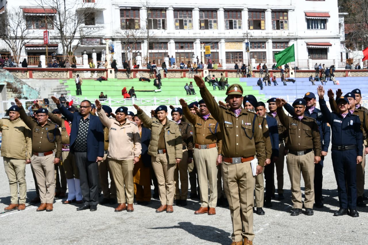 नैनीताल, 25 जनवरी । राष्ट्रीय मतदाता दिवस के अवसर पर रविवार को नैनीताल के ऐतिहासिक डीएसए मैदान में आयोजित कार्यक्रम में वरिष्ठ पुलिस अधीक्षक डॉ. मंजूनाथ टीसी ने जनपद नैनीताल के पुलिस अधिकारियों और कर्मचारियों को शपथ दिलाई।