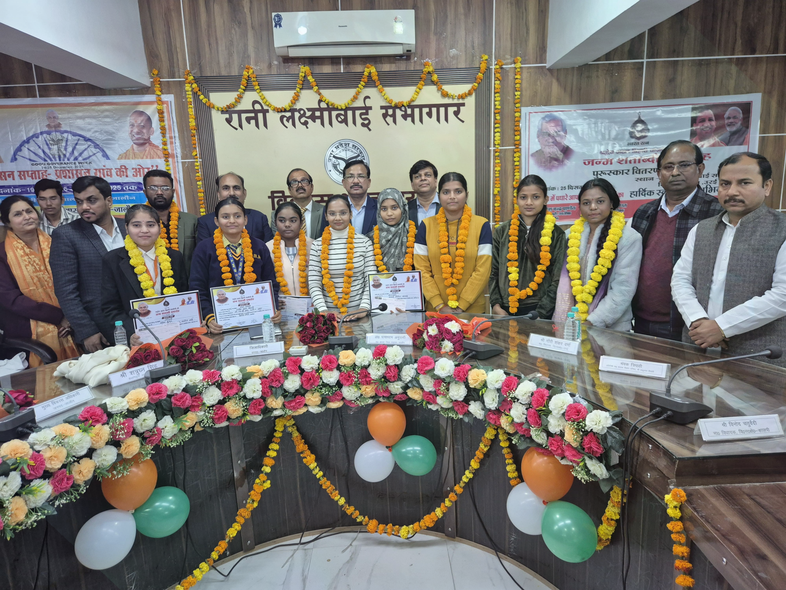 कार्यक्रम में जिला पंचायत अध्यक्ष डॉ. घनश्याम अनुरागी, सदर विधायक गौरी शंकर वर्मा, माधौगढ़ विधायक मूलचंद निरंजन व जिलाधिकारी राजेश कुमार पाण्डेय द्वारा विजेता छात्राओं को चेक एवं प्रशस्ति पत्र प्रदान कर उनका उत्साहवर्धन किया गया। इस अवसर पर छात्राओं द्वारा भारत रत्न श्रद्धेय अटल बिहारी वाजपेयी जी की रचनाओं का भावपूर्ण काव्य पाठ प्रस्तुत किया गया, जिसे उपस्थित जनसमूह ने सराहना के साथ सुना।