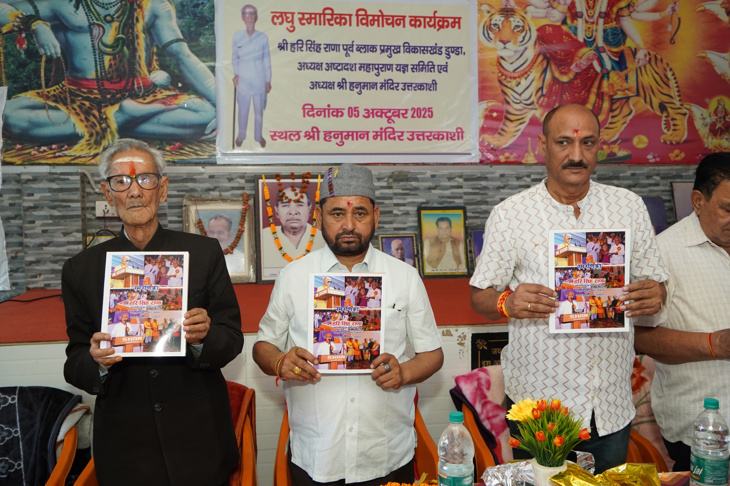 रविवार को जिला मुख्यालय उत्तरकाशी स्थित हनुमान मंदिर सभागार में आयोजित कार्यक्रम में 91 वर्षी वयोवृद्ध हरि सिंह राणा पूर्व ब्लॉक प्रमुख डुंडा, अध्यक्ष अष्टादश महापुराण यज्ञ समिति हनुमान मंदिर उत्तरकाशी आधारित लघु स्मारिका विमोचन कार्यक्रम आयोजित किया गया।